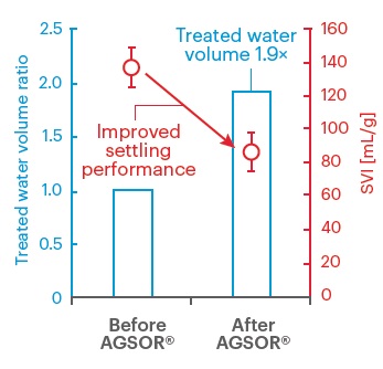 ・High MLSS operation by improving sludge sedimentation.