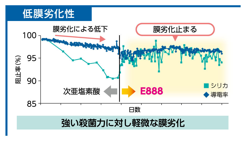 汚れを抑え、良好な通水状態を維持することで長時間RO膜を使用できるようになります。